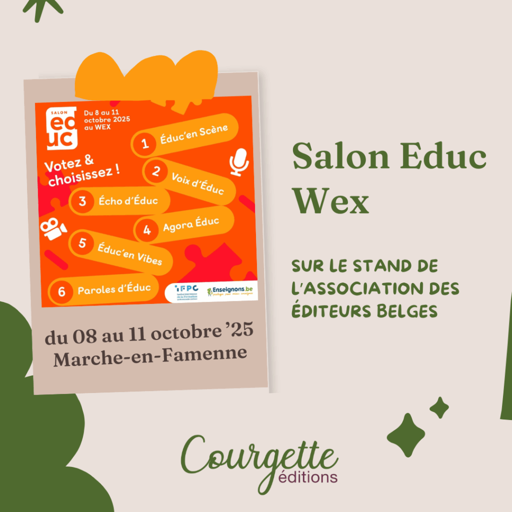 Au wex de Marche-en-Famenne, lors du salon éduc les mercredi 8 et vendredi 10 octobre sur le stand des éditeurs singuliers! (nous y serons du 08 au 11 octobre, contactez-nous pour avoir un accès gratuit!)