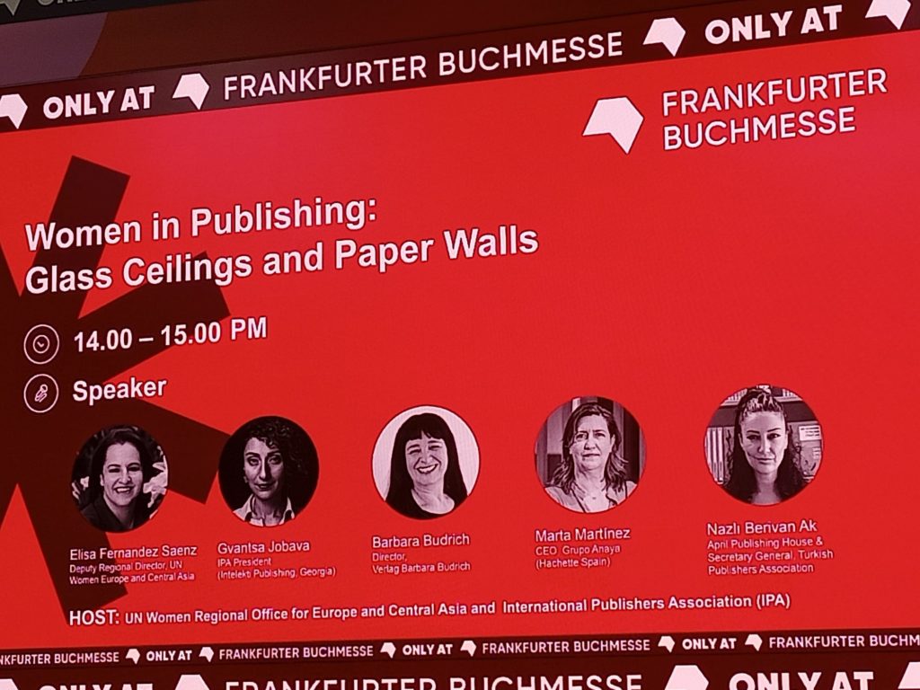 In Frankfurt, I had the opportunity to attend the panel organized by PublisHer, “Women in Publishing: Glass Ceilings and Paper Walls,” with Rachel Martin (Elsevier), Barbara Budrich, Marta Martinez Gutierrez (Grupo Anaya), and Nazlı Berivan Ak (Türkiye Publishers Association).