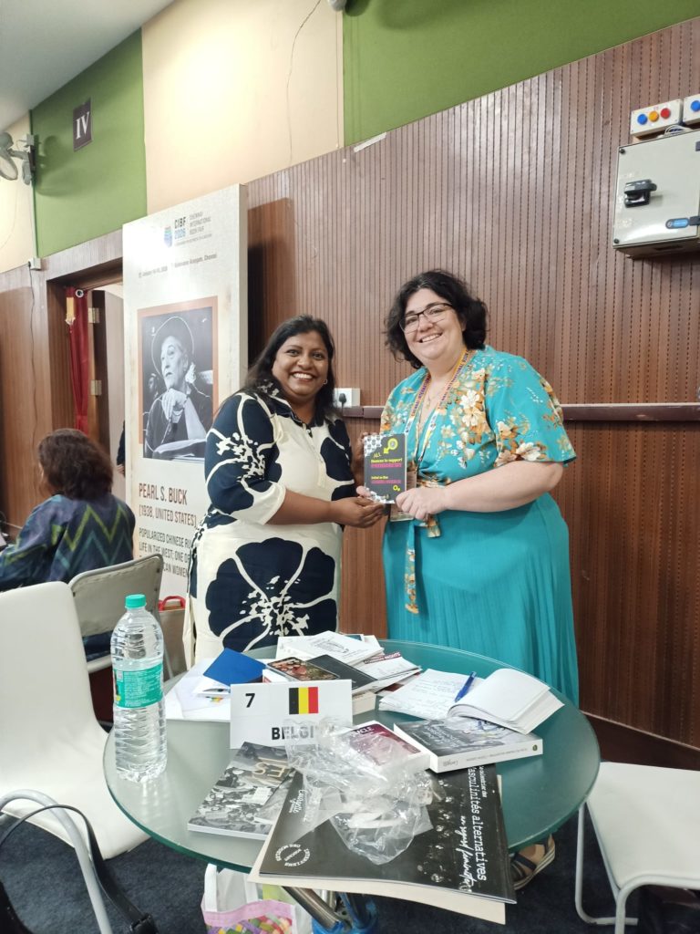 Ma candidature a été retenue pour participer à un Fellowship en Inde, à la foire internationale du livre de Chennai où j’étais très fière de représenter la Belgique!!!